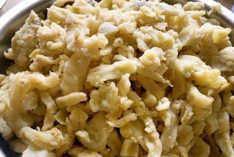 我喜歡吃蒸菜,所以準婆婆做瞭這道蒸茄子,這個是我最喜歡吃的一道菜,茄子切絲拌上面蒸熟,配上蒜泥,辣椒油一起吃特別清香。最主要的是沒有油,吃瞭不怕胖,老媽嘗後直誇贊,還說要讓尊婆婆教她做法呢!