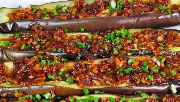 炸茄子:將切好的茄子塊油炸,然後加入蒜、鹽、辣椒、醬油、糖等調料,制成口感香脆、味道濃鬱的炸茄子。