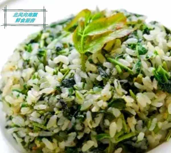 1 香椿芽洗凈切成小沫,另起鍋燒油,下入米飯炒香。
