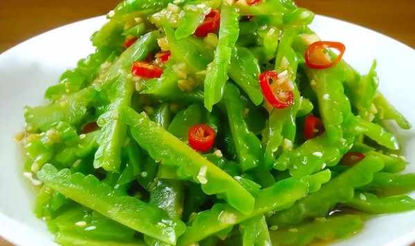 苦瓜是一種清熱解暑的蔬菜,非常適合夏季食用。將苦瓜切成薄片狀,焯水後撈出瀝幹水分,加入蔥薑蒜末、醋、糖、鹽、辣椒油等調料拌勻即可。這道菜具有清涼解暑、降火清熱的功效。