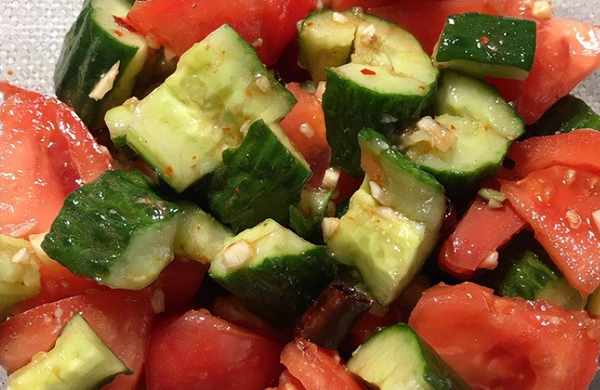 這道涼拌菜的做法非常簡單,隻需要將黃瓜切成薄片狀,番茄切成小塊,加入蔥薑蒜末、醋、糖、鹽、芝麻等調料拌勻即可。這道菜色澤鮮艷,口感清爽,非常適合夏季食用。