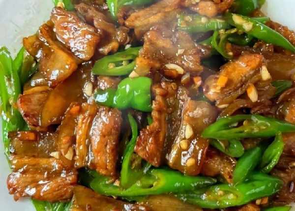 食材準備:五花肉、青椒、線椒、薑蒜末。