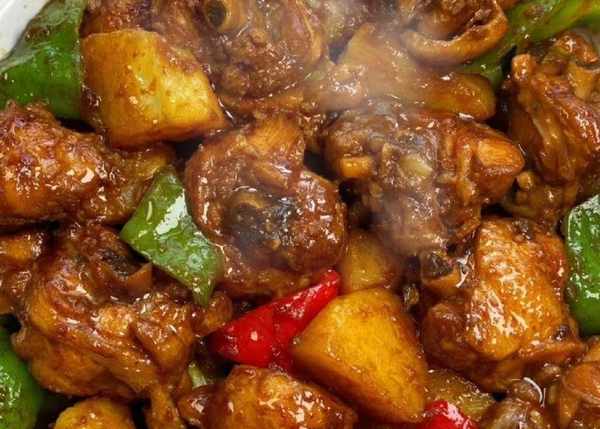 食材準備:雞腿、土豆、青紅椒、薑片、蔥段、幹辣椒。