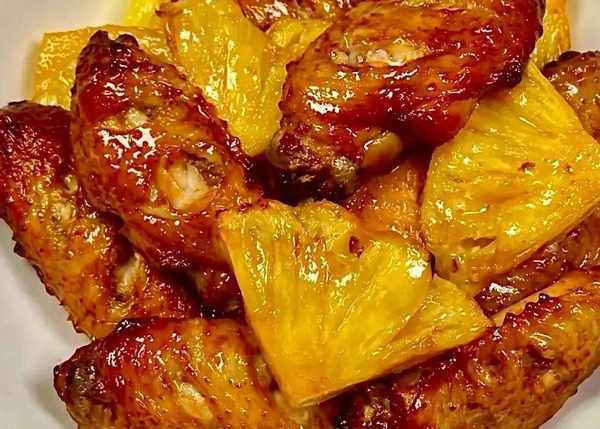 食材準備:菠蘿、雞翅、薑片、蒜瓣、黑胡椒碎、蜂蜜。