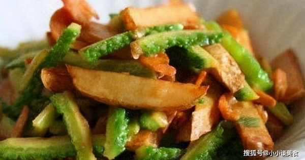 2.油鍋加熱至80%熱,加入土豆塊和苦瓜塊炸至金黃色,瀝幹油;