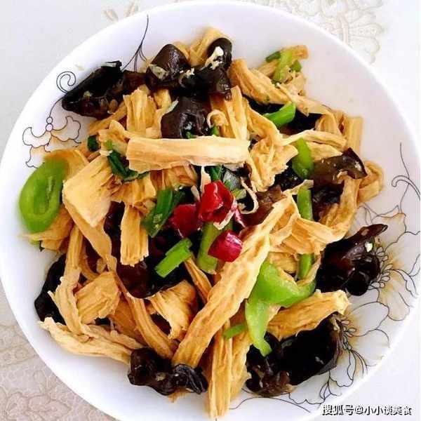3、加入腐竹、香菇、鹽、生抽拌勻。味道好的時候,加入西紅柿,攪拌均勻,然後轉小火煮1分鐘。加入雞精,拌勻後起鍋。