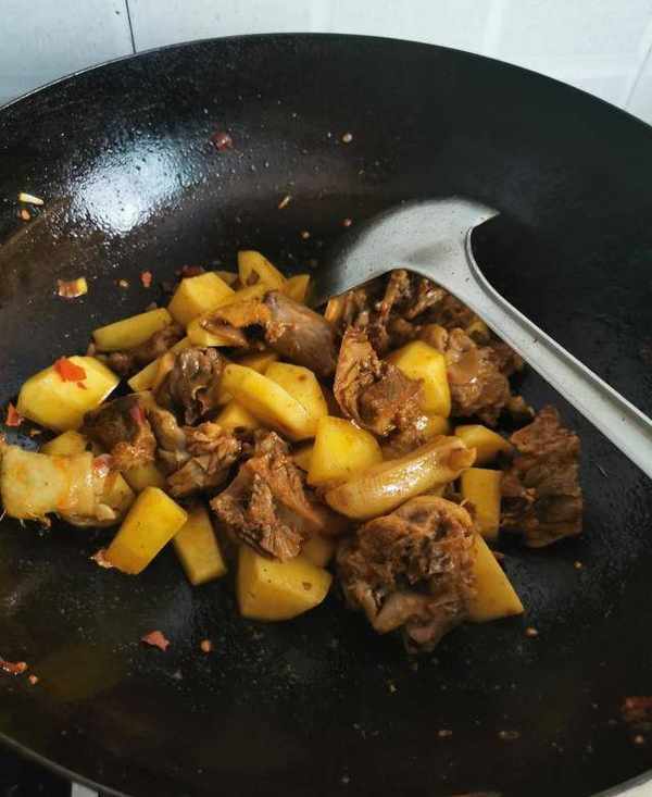 土豆燉鴨塊做法比較簡單,調料需要準備蔥薑,生抽,豆瓣醬,少許幹辣椒。油熱之後,把豆瓣醬,蔥薑,幹辣椒放進去炒香,然後再放一些生抽,把鴨肉倒進去,然後倒入土豆,加水沒過菜,然後蓋上鍋蓋開始燉。鴨肉和土豆燉熟之後加鹽調味即可出鍋。