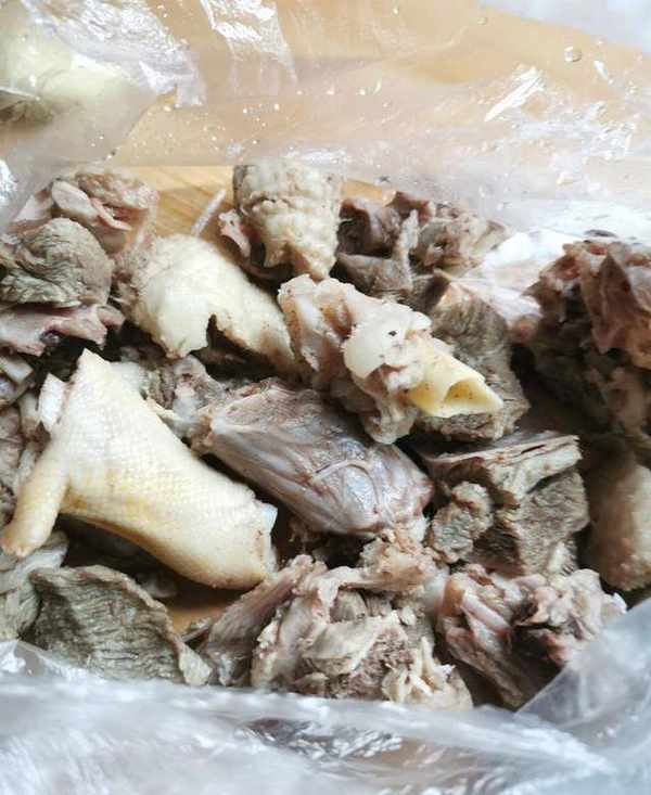 鴨肉,是我們自傢養的鴨子,吃著非常勁道。鴨肉有潤燥的功效,所以秋天可以適量多吃一些。這個鴨肉提前用水焯過瞭,這樣炒的時候容易熟。