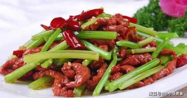 4.鍋內放油燒熱,加入豆瓣醬炒香,加入切碎的芹菜、胡蘿卜、豬肉和所有調料,炒至水幹即成。