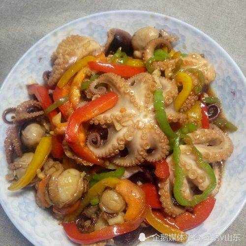 食材:八爪魚、彩椒、蔥薑蒜絲、料酒、生抽、白糖、胡椒粉、雞精、香油、食鹽