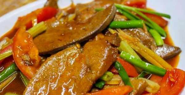 3、在一個碗裡,將醬油、水淀粉、鹽和少許糖(視甜度而定)混合打成汁。鍋中放入豬油燒開,將薑末、蒜末、泡辣椒爆香,加入豬肝翻炒,加入料酒。然後加入配料拌勻,放入醬汁中煮熟。就在上菜之前,加入切好的洋蔥並撒上胡椒粉調味。