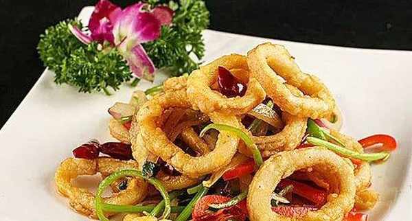 1:先將紅魷魚去內臟去皮,然後切成小圈;