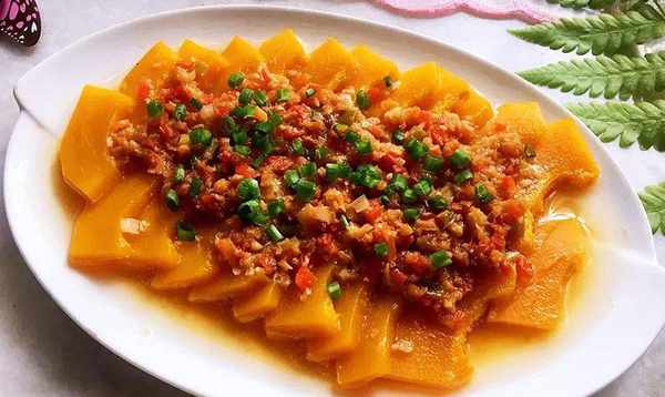材料:南瓜300克,紅辣椒1勺,大蒜2勺,大蒜1勺,薑1勺,高湯1勺,生抽2勺,香油1勺,水2勺.