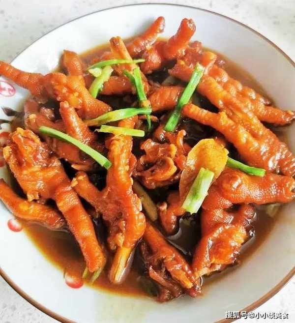 準備材料:雞爪10個,薑蒜片,花椒,幹辣椒適量,油,鹽,雞精,糖,醋,料酒,生抽,老抽