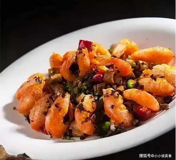 1.鮮蝦去頭、去腿,從肚皮處一個個切開,用蔥薑水醃好,入油鍋炸至酥脆,撈出控油待用.