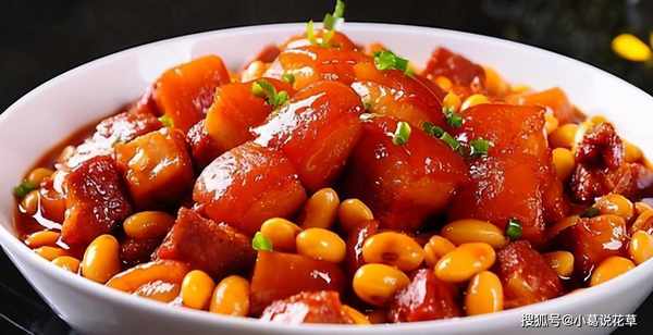 配料:豬肉500克,黃豆300克,老抽1茶匙,生抽1匙,白糖10克,料酒10克,八角3粒,花椒5克,月桂葉3片,1茶匙鹽