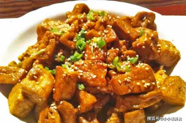 6、加入五香豆腐幹翻炒片刻,至豆腐幹香。