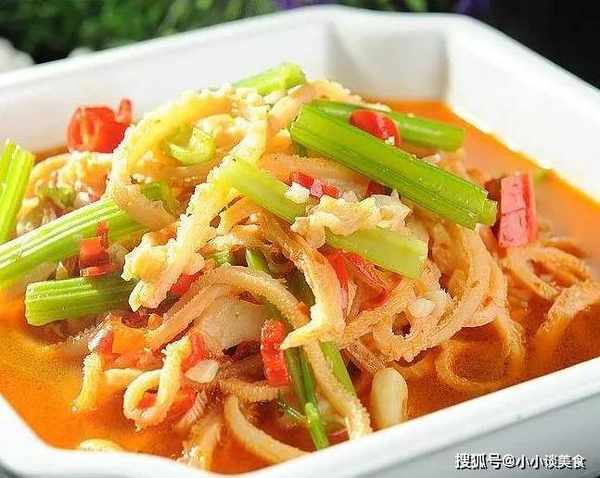1.白菜心切絲,洗凈數次,縱向切條;