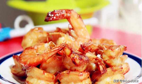 4.加入炸好的大蝦,加入花雕酒、生抽和糖快速炒至順滑。