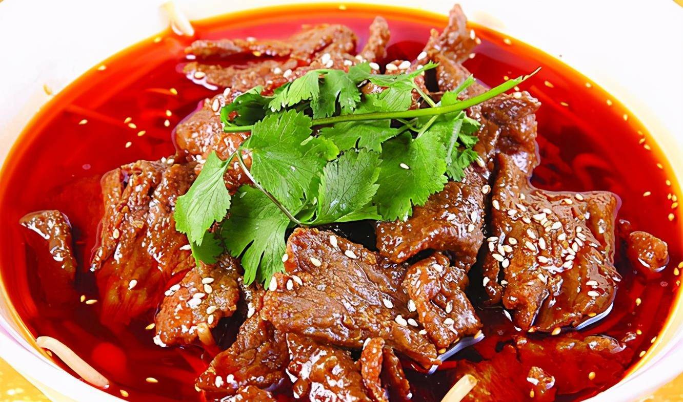 原料:牛肉250克,芹菜50克,生菜豆角,鹽,雞精,熱酒,香油,豆瓣醬,芝麻,花椒碎,幹紅辣椒丁,青椒切片,紅辣椒切碎,蔥花、蒜末、青蒜和植物油適量。