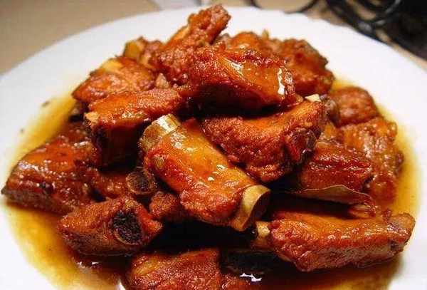 配料:排骨、鹽、糖、陳醋、生抽、老抽、朗姆酒、胡椒粉、月桂葉、八角。