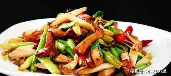 1、豆腐幹切片,花椒切丁,白色部分用斜刀切去,蒜葉切段。