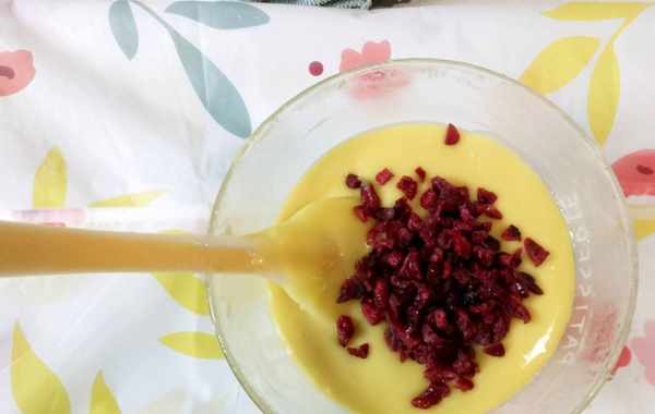 5、把蔓越莓幹倒進去,攪拌均勻。