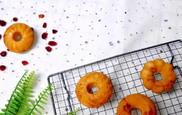 沒有瞭齁甜的巧克力塗層,甜甜圈的糖分來源就要換一下,加入瞭蔓越莓來提高甜度,蔓越莓本身帶有的微酸感也會讓甜甜圈不那麼的甜膩,而且蔓越莓也能美容養顏,讓皮膚變得有彈性,這裡拋去瞭常規油炸甜甜圈的做法,采用瞭用烤箱烤制甜甜圈的方法,這樣做不僅降低瞭熱量,也降低瞭油膩感,看到這裡,是不是很心動瞭,一起來學習一下吧。