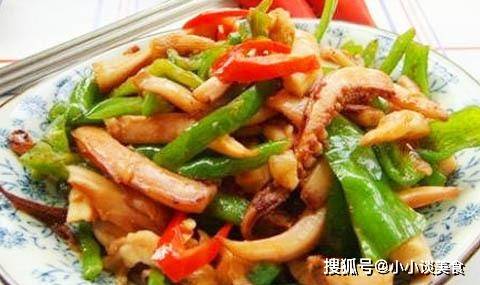 材料:魷魚絲、青椒、小米椒、泡椒、蔥、薑、蒜、味噌、醬油、料酒、孜然。