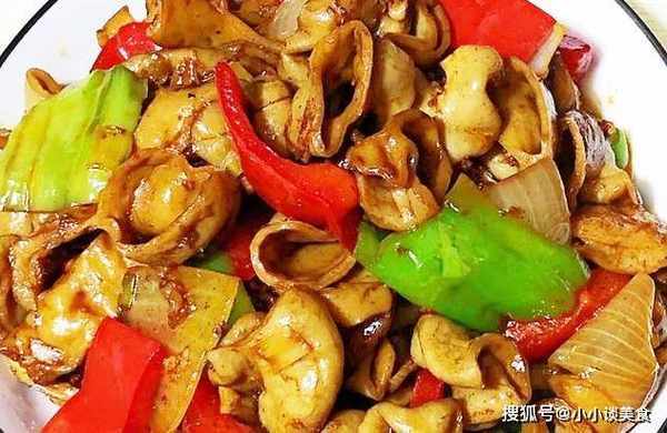 原料:煮熟的豬大腸500克,青椒、胡蘿卜各50克,紅辣椒碎、五明、醬油、鹽、料酒、糖、醋、濕淀粉、紅油、食用油。
