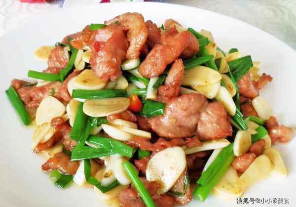 4、鍋中倒入少許油,油熱後爆香蒜片。烤好後,羊肉片用糖醋醃制,再加入少許鹽和老抽。
