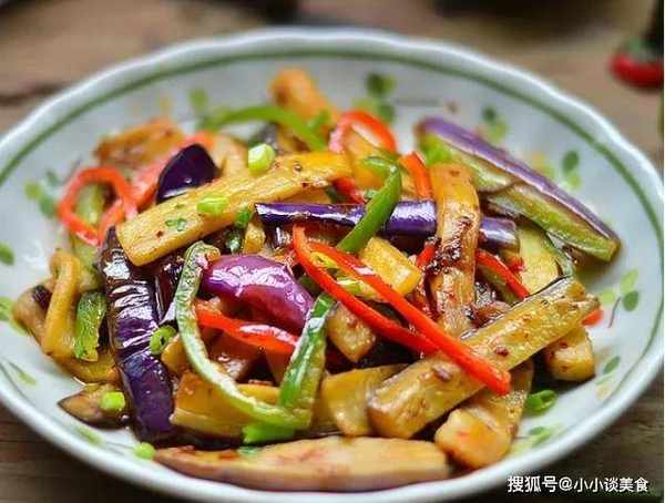 原料:茄子、青椒、紅椒、大蒜、洋蔥、辣椒醬、醬油、鹽。