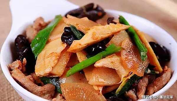 配料:筍250克,蘿卜200克,黑蘑菇10克