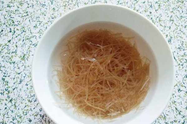 ③紅薯粉條泡軟但是又不能太軟,用手一掐就斷就可以瞭。如果泡的時間太久,粉條就沒有瞭筋性,口感不好吃。