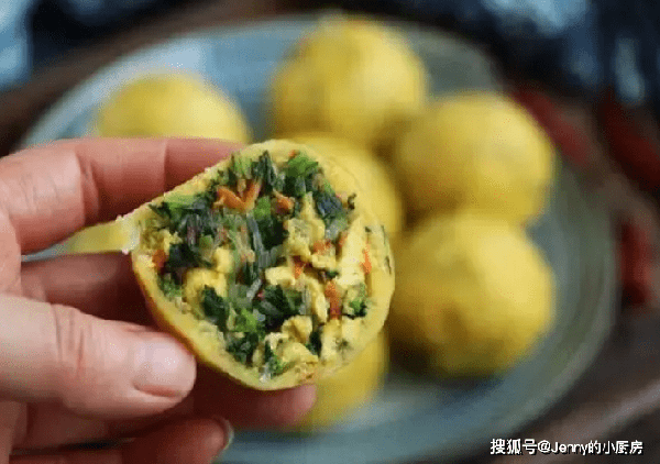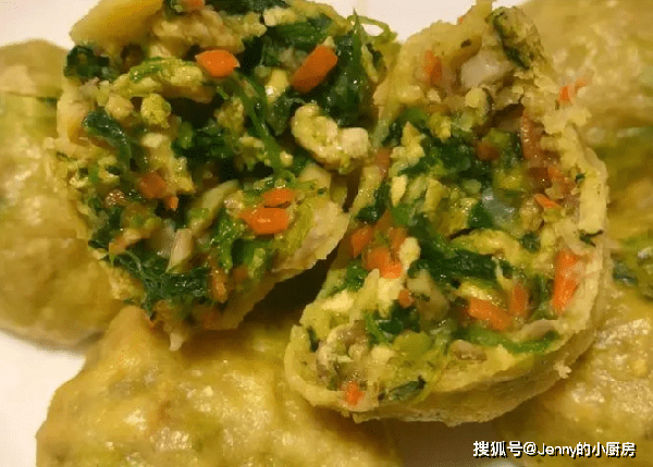 接著捏成幾個菜丸子,裹上兩三層玉米面,一層的話太薄瞭,一層裹好後放進手心裡使勁攥一攥。