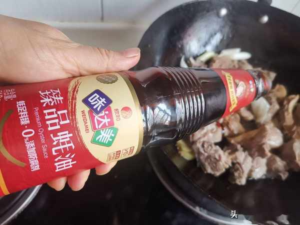 第五步:然後倒入適量的蚝油煸炒上色,提鮮。