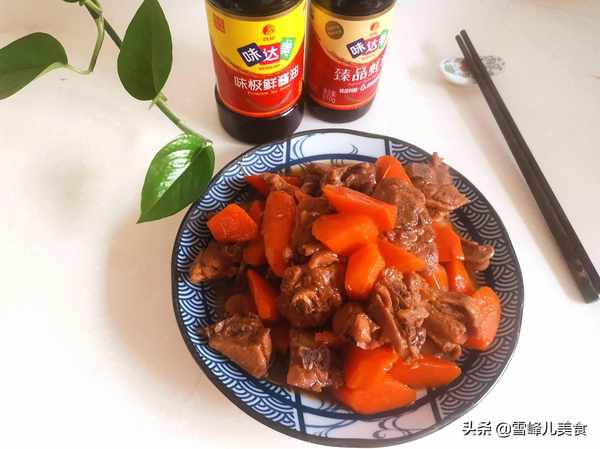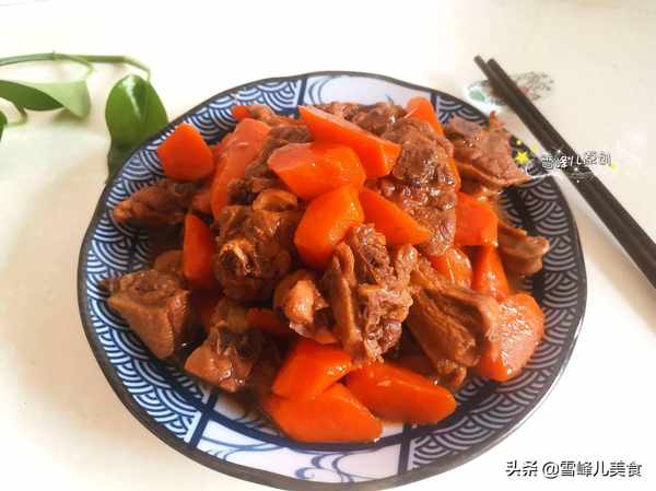 所用資料:鴨腿2只,胡蘿蔔3個,葱段,薑片,料酒,醬油,蚝油,少許鹽,花椒少許,八角,花生油少許。