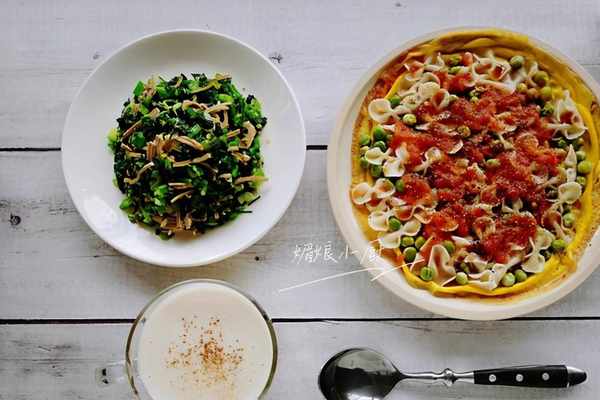 其實經常仔細看完我分享的朋友們都知道,我傢的三餐都是很平常很簡單的,隻是富於變化食物的搭配,時而會更換下食器,也沒有特意的擺盤。就像這份早餐一樣,用到的食材是再普通不過的牛奶、雞蛋、面條、豌豆仁、菜心、豆腐絲,估算下成本也不到10塊錢。