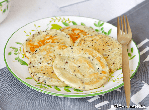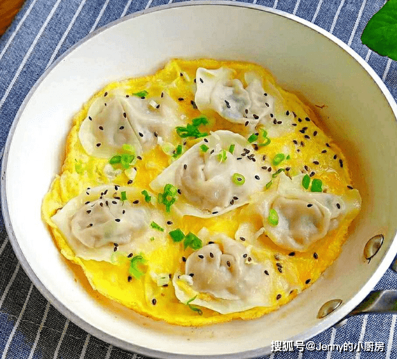 接著倒入蛋液,撒上黑芝麻、蔥花,繼續小火煎一會兒,煎到雞蛋凝固。這款早餐就做好瞭,有肉有蛋,好吃又營養,吃得好又吃得好。