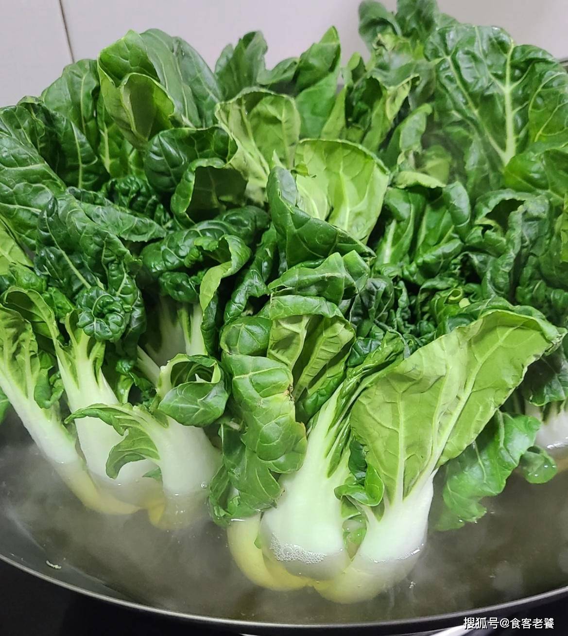 2鍋中加水燒開,加入食鹽後,將白菜頭先浸泡在開水裡,大火煮開後,再將菜葉浸泡在開水裡轉小火,待白菜燙至8成熟時撈出。