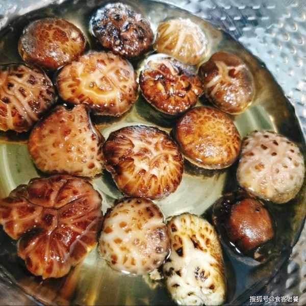 4要吃的時候,取幹香菇用冷水泡發10分鐘清洗幹凈,接著換水泡發2個小時。