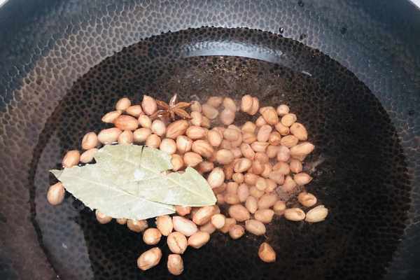 1、首先我們要把花生放在鍋裡煮一下,煮花生的時候,加入適量的食鹽、1粒八角、2片香葉,冷水下鍋,水開之後煮20分鐘,喜歡吃口感軟面的可以多煮一會。花生煮好之後,過下涼水,這樣花生吃起來口感更好。