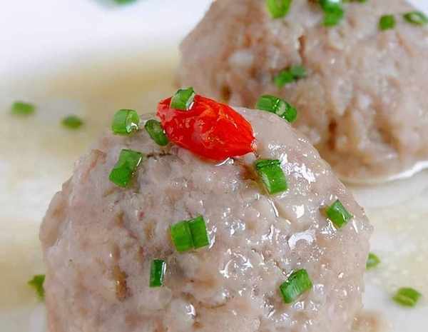 2.醃制好的肉糜加入生薑末、蔥白末,加入胡蘿卜末和幹香菇末拌勻,分次加入少許水淀粉攪拌至上勁,依次做成小肉丸,放在盤中。