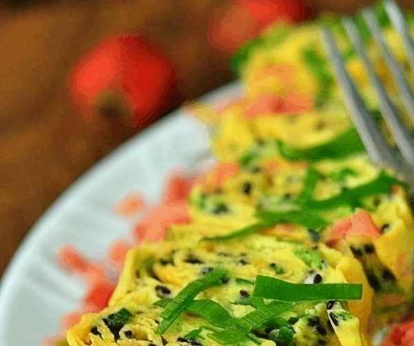 食材:青椒,雞蛋,蔥花,香醋,味精,精鹽等。