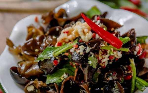 做法:1、木耳用清水泡發,洗凈後撕成小朵。大蒜切末,辣椒和香菜切成小段。