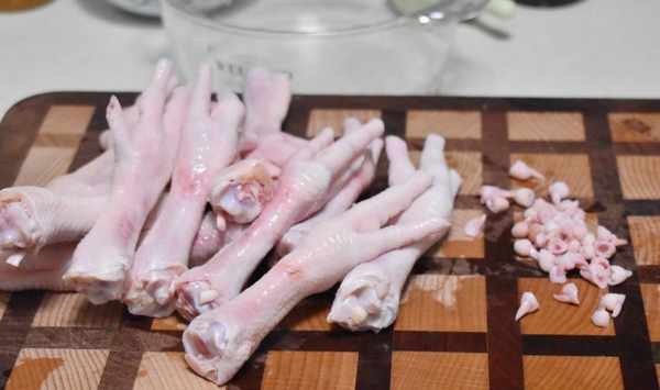 第一步鳳爪用水清洗幹凈,剪掉鳳爪的指甲。