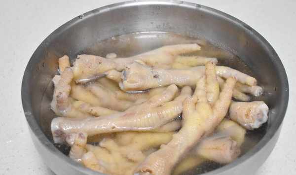 第四步冰水浸泡可以去除鳳爪表面的油脂,鳳爪吃起來更爽口。如果冰水浸泡鳳爪很渾濁,建議換一下冰水,使得鳳爪油脂更少,鳳爪吃起來不會油膩。