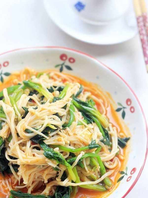 我特別愛吃金針菇,隻要看到就會買一些,就是價格比其它菇類稍微高一些,吃火鍋和涼拌做湯尤其愛吃。金針菇無論和誰搭配都不會喧賓奪主。主,它就是保持瞭鮮美的口感,清清爽爽滑嫩好吃。火鍋不是經常吃的菜,但是涼拌菜可以常吃,任意用金針菇搭配就是一盤開胃瞭。現在的菠菜很鮮美好吃,金針菇和它一起拌出來真是美味菜瞭。