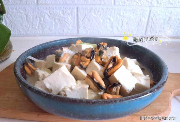 海虹燉豆腐的做法:食材:海虹肉少許,豆腐適量,鹽少許,蔥絲,薑絲,花生油1勺。