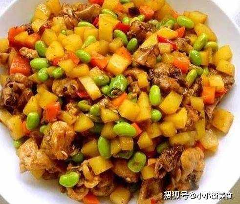 3、將桃子、切碎的胡蘿卜、玉米倒入鍋中不斷翻炒,加入足量的熱水,不蓋鍋蓋煮兩分鐘;